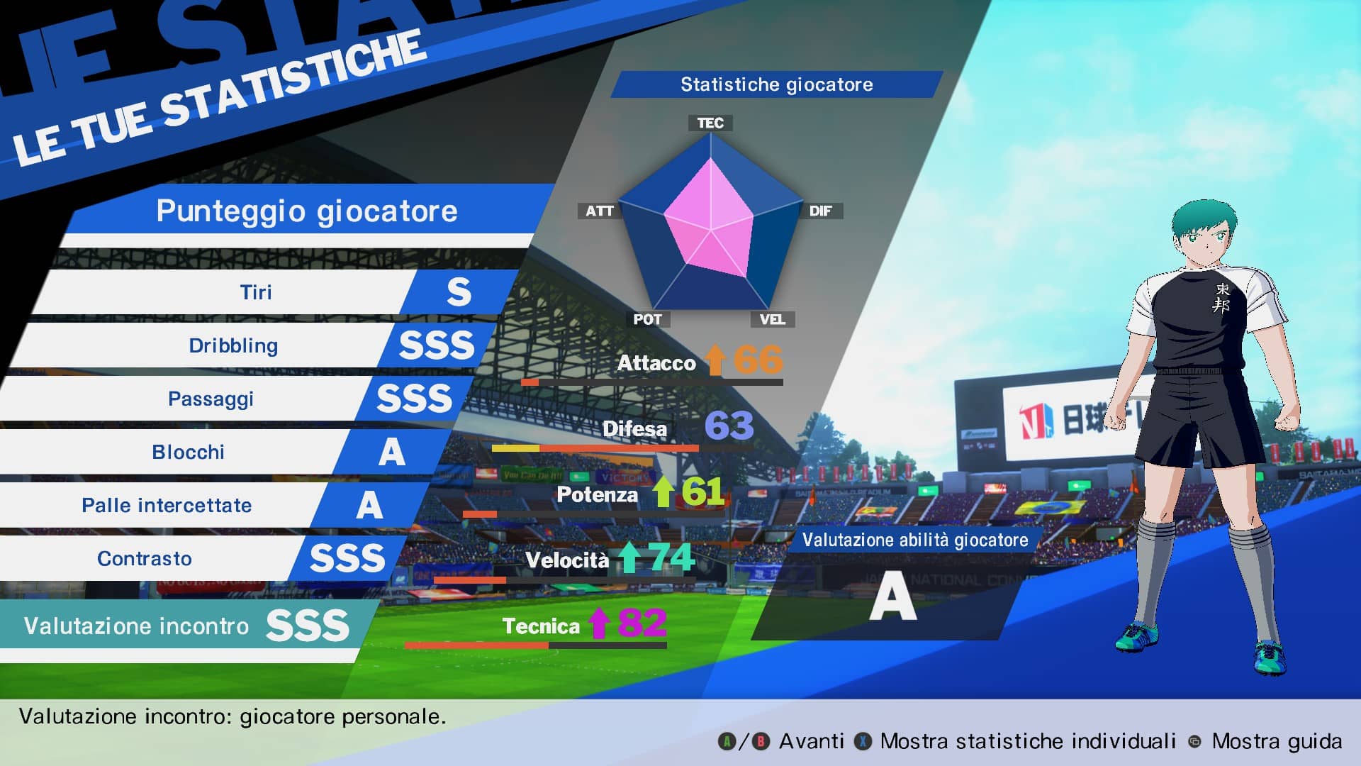 Dovete continuare così fino agli SSS, non c’è tantissimo da dire. Imparatevi un buon tiro lungo, come il drive shot di Tsubasa al massimo e fate alzare un po’ anche il tiro, ma ovviamente le vostre main stats da alzare saranno contrasto, passaggio e dribbling, essendo le più facili.