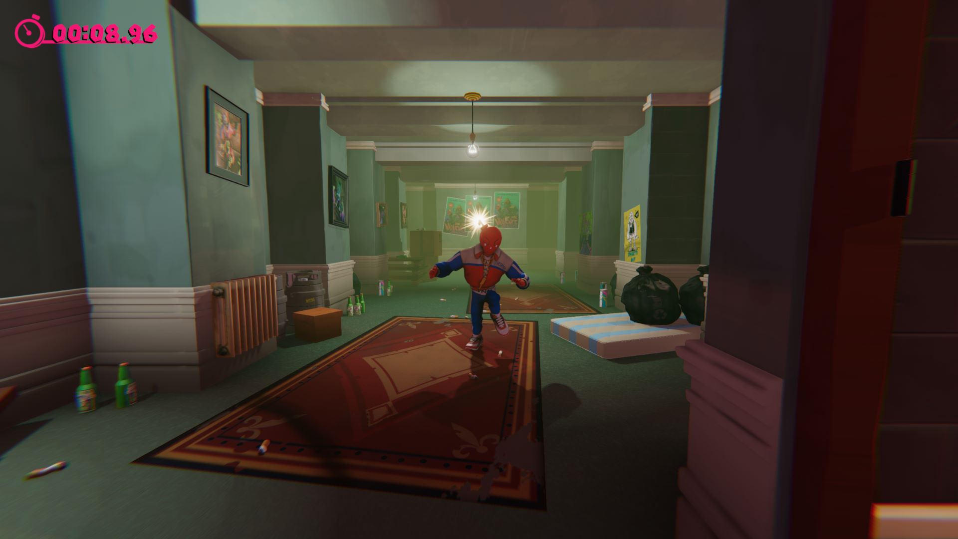 Anger Foot punta molto sull’immediatezza dell’azione, trovando un giusto mix di tanti fattori, senza mai strafare. Partiamo, ad esempio, dal gameplay. Il gioco introduce come meccanica principale, quella del calcio: Anger Foot, ovviamente, sferra dei calci che sono in grado di uccidere qualsiasi nemico con un colpo, così come abbattere le porte che voleranno via divelte dai loro cardini, schiantando anche i nemici nel loro passaggio. È sicuramente il modo più efficace e divertente con cui sbarazzarsi dei malviventi, ed è anche quello intorno a cui gira attorno molto del gioco, ma non tutto, sicuramente.