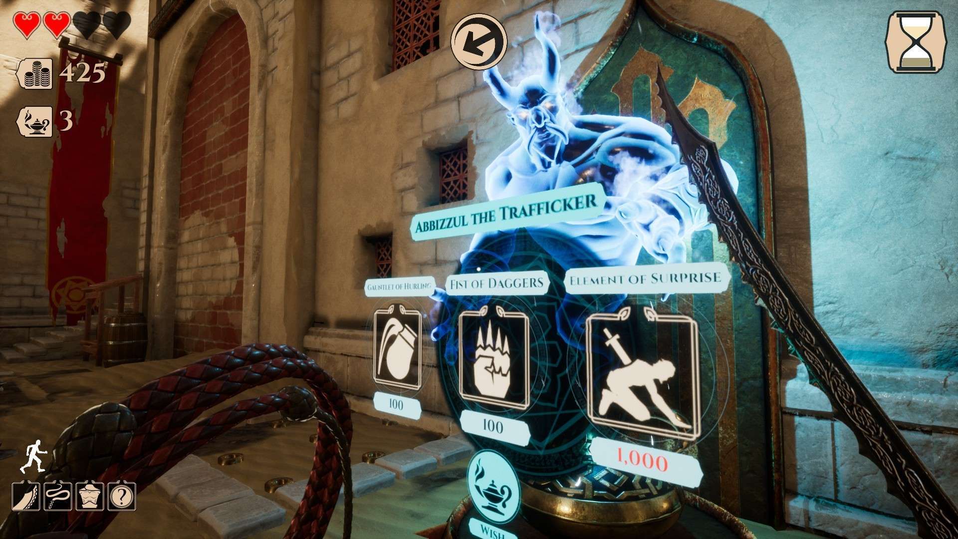 Nella sua esplorazione della città, il nostro ladro-tombarolo si imbatterà frequentemente in alcuni geni (perlopiù) benevoli, che lo aiuteranno in vari modi lungo il cammino: potrà infatti cedere parte dei tesori accumulati per ottenere il loro favore, e attivare così utili effetti: alcuni geni gli restituiranno parte della salute perduta, altri evocheranno uno spirito che combatterà accanto a lui, altri ancora disabiliteranno le trappole, mentre da altri potrà acquistare utili oggetti per potenziare il proprio equipaggiamento (armi o armature migliori, amuleti, ecc). Non solo! Esprimendo un desiderio, il giocatore potrà rendere i benefici dei geni ancora più preziosi… Ma naturalmente anche il loro costo aumenterà! Attenzione, però: avrete a disposizione solo tre desideri per tutta la durata per la partita… quindi usateli saggiamente.