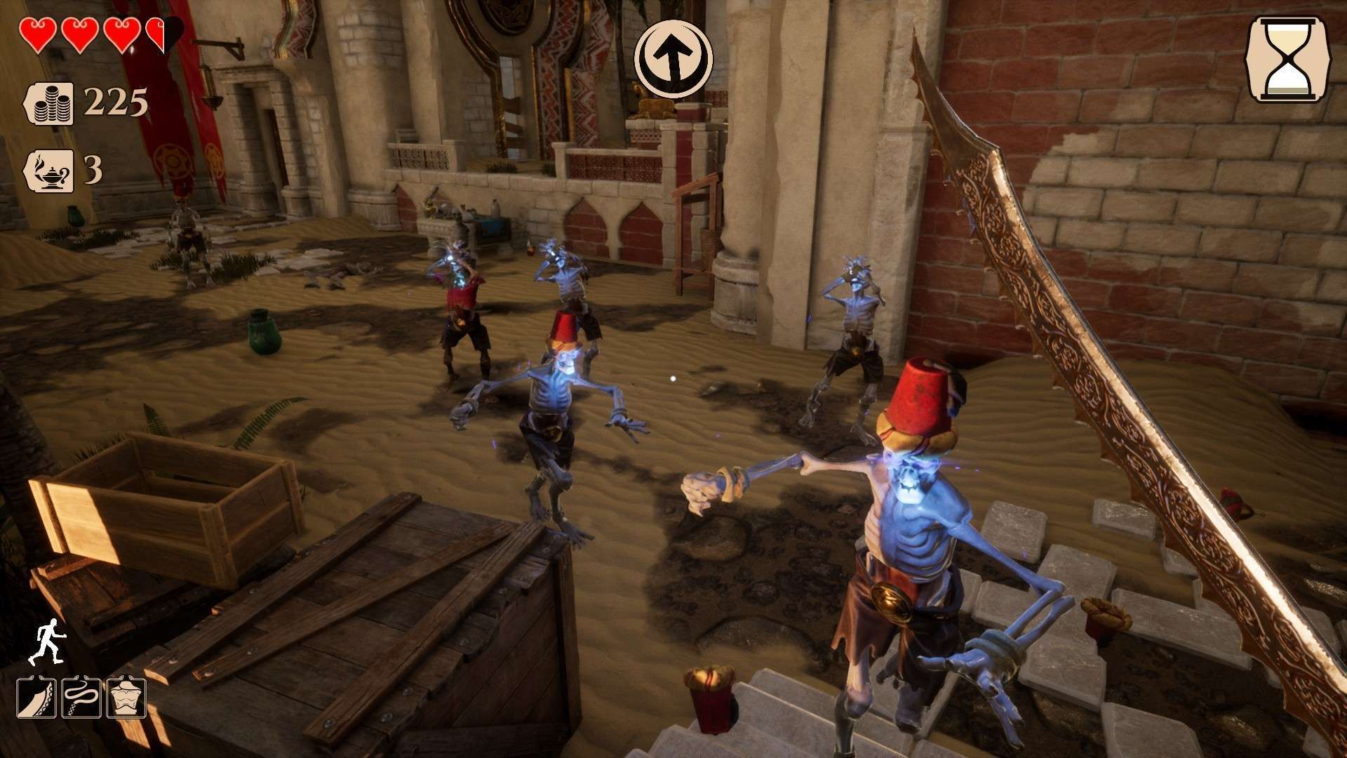 In City of Brass il giocatore dovrà affrontare 13 livelli di crescente difficoltà, arraffando quanti più tesori possibile, affrontando a colpi di scimitarra e frusta i nemici che gli sbarreranno il cammino ed evitando le trappole disseminate per la città – o, ancora meglio, sfruttandole per liberarsi dei nemici. Un combat system semplicissimo, divertente ed efficace: correre e menare, correre e spaccare, correre e distruggere. Interagire con gli oggetti dello scenario (principalmente spaccandoli) non solo vi darà modo di raccogliere tesori nascosti, ma vi faciliterà anche l’uccisione dei nemici. E proprio grazie alla varietà di nemici (non-morti con diverse caratteristiche distintive) e di trappole (dalle classiche punte che escono dal terreno fino alla sabbia che spruzza fuori dalle pareti), ogni livello è particolare e diverso dagli altri.