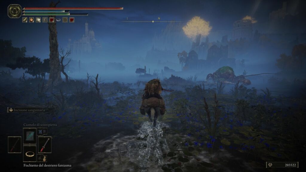 Il gameplay di Bloodborne Elden Ring, trova le sue basi nelle meccaniche oramai assimilate e conosciute dei precedenti titoli (specie in Dark Souls III), con aggiunte che di certo sono state un piacere per i fan della saga: prima di tutto la possibilità di rendere dual blade ogni arma per categoria, o ancora l’aggiunta di mosse che permettono lo sbilanciamento del nemico (dall’attacco in salto, al contrattacco che mostrano l’esperienza appresa da Sekiro) dando nuovi approcci ai giocatori; l‘esplorazione del mondo di gioco viene agevolata dall’uso di Torrente, una cavalcatura che potremmo richiamare in quasi ogni momento, e dall’aggiunta di un tasto per saltare ( e non più quell’intricato sistema di specchi e leve) con il quale potremmo raggiungere luoghi inaccessibili o saremmo costretti spesso ad affrontare terribili sezioni Platform.