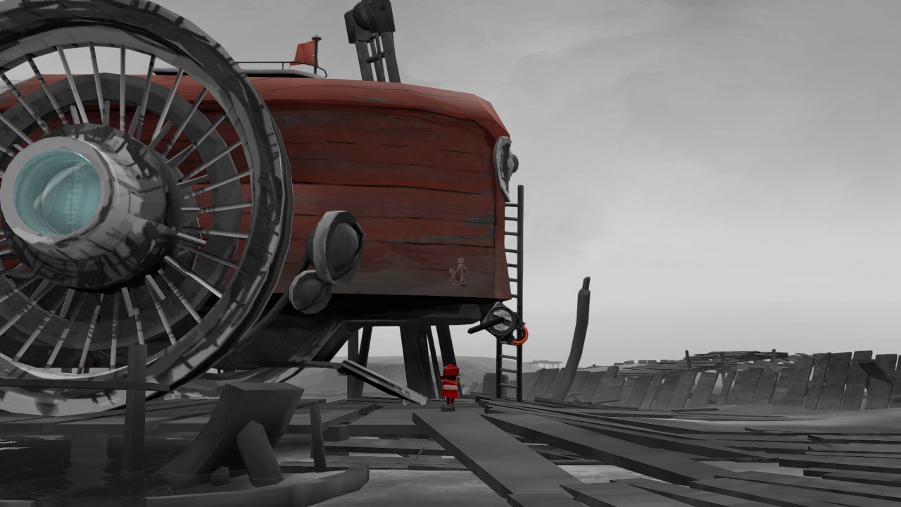 Come molti tra gli indie usciti negli ultimi anni, Far: Lone Sails utilizza una narrazione muta, affidando il suo canovaccio a stimoli visivi e sonori, con ampio spazio interpretativo lasciato al giocatore. La storia ha inizio con un’immagine potentissima: una bambina in lutto sulla tomba di un uomo, presumibilmente suo padre.