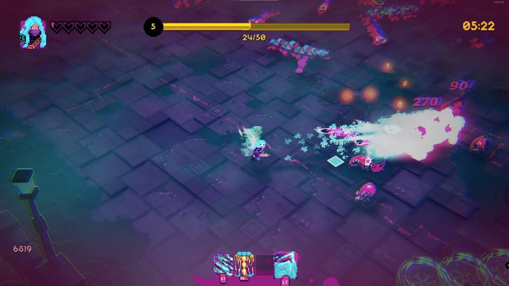 I nemici presenti all’interno del gioco non saranno numerosi, probabilmente anche a causa della durata del gioco, ma i loro pattern di movimento e di attacco saranno abbastanza vari da rendere l’esperienza interessante. In maniera diametralmente opposta le magie, gli artefatti e i potenziamenti delle magie stesse saranno addirittura quantitativamente troppo elevati: capiterà spesso, infatti, di scegliere ad esempio Fireball come magia principale e di trovare, in seguito, una magia di supporto come Black Hole per poi concludere la run avendo trovato solamente un potenziamento per Fireball e magari cinque o sei per Black Hole. Una quantità così elevata rischia di rendere poco bilanciata la progressione e le probabilità di ottenere potenziamenti per le abilità che davvero fanno la differenza. Comprensibile la scelta di lasciare tutto in mano alla casualità, ma forse sarebbe stato meglio guidare un po’ questa casualità in certi casi.