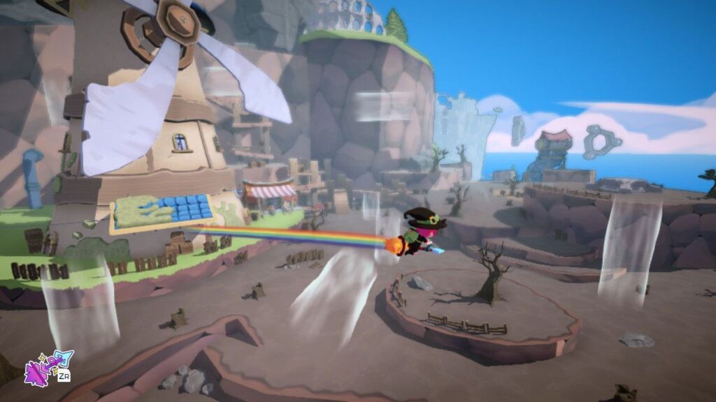 Durante i primi due giorni della nostra avventura impareremo le varie meccaniche di gioco: lo scopo principale delle missioni è quello di raccogliere e consegnare diversi oggetti in giro per l’isola, che sia a piedi o a cavallo della nostra scopa. La mappa di gioco è strutturata in modo tale da essere della grandezza giusta per permettere delle traversate abbastanza lunghe da farci godere il coloratissimo panorama e abbastanza piccola da non fare risultare noioso il tragitto da compiere, sfruttando diverse correnti di vento per muoverci. Inoltre bisognerà prestare attenzione a non rovinare il contenuto dei nostri pacchi, che ci verranno affidati con alcune condizioni per evitare di venire distrutti, come non scontrarti troppo in giro, non bagnarli o consegnarli entro il tempo limite.