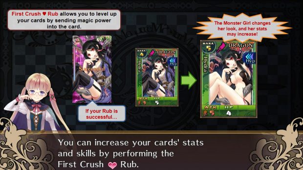 Dovete sapere che dopo le partite, oltre a guadagnare soldi virtuali per sbustare e acquisire nuove carte, guadagneremo dei preziosi punti appositi per potenziare le carte già in nostro possesso tramite un “simpatico” minigioco che, a furia di sfrega sfrega, ci farà svestire i personaggi e quindi potenziare la carta perché spogliando le donnine diventano più forti… Perché… Non lo so, perché è bello così, tanto lo sapete che funziona così ormai. Il fan service è tutto qua, è una feature ecchi neanche così spinta, siamo anche sotto ai vari Senran Kagura, ma a leggere determinate cose pare che vi sto descrivendo il nuovo gioco della Illusion. Ma magar*coff*