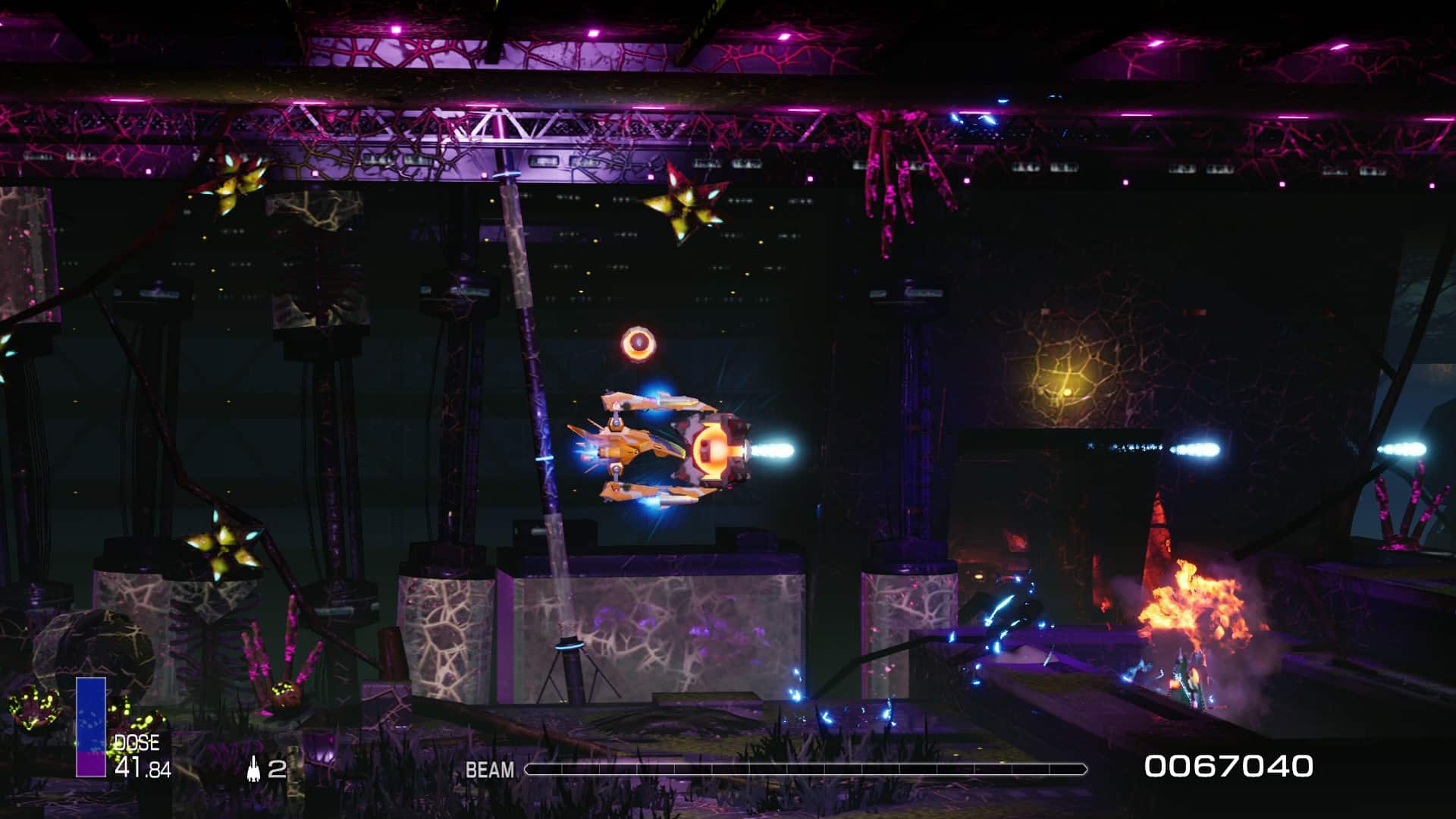 Il gioco è estremamente impegnativo, mettendo a dura prova la concentrazione e i nervi anche degli appassionati. Se da un lato questo porta ad aumentare la longevità del gioco dato che per padroneggiarlo servirà più tempo, dall’altro potrebbe scoraggiare i novizi già dopo qualche partita. Un solo colpo alla nostra nave ci porterà infatti a reiniziare il livello dall’ultimo checkpoint e senza alcun potenziamento, rendendo alcune parti decisamente ostiche. Se il primo livello scorre via facilmente in quanto introduzione al sistema, già dal secondo i grattacapi aumenteranno notevolmente grazie ad un pattern nemico più vario e un boss di fine livello particolarmente fastidioso.