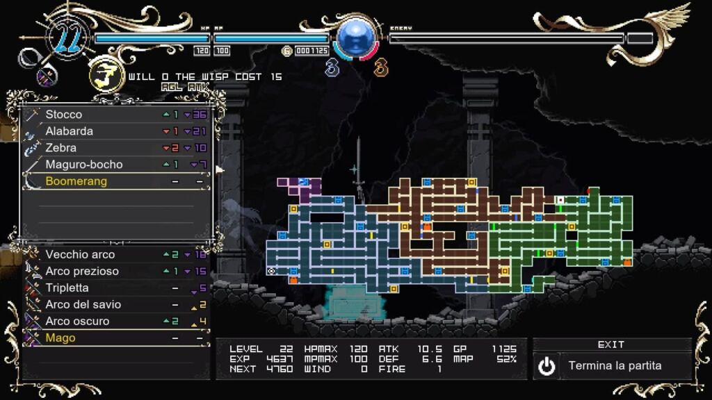 Record of Lodoss war Deedlit in Wonder Labyrinth si presenta come un classico metroidvania (se non sapete cos’è un metroidvania vi invito a legger la nostra recensione di Metroid Dread) in pixelart con elementi Rpg: infatti oltre all’innumerevoli mosse e power up ottenibili durante l’avventura che permetteranno al giocatore non solo di sbloccare nuovi poteri ma anche aree precedentemente inesplorabili, il gioco possiede un sistema di livello del personaggio, delle statistiche ed un inventario contenente le innumerevoli e sempre diverse armi ottenibili durante l’avventura, nonché tutti gli archi.