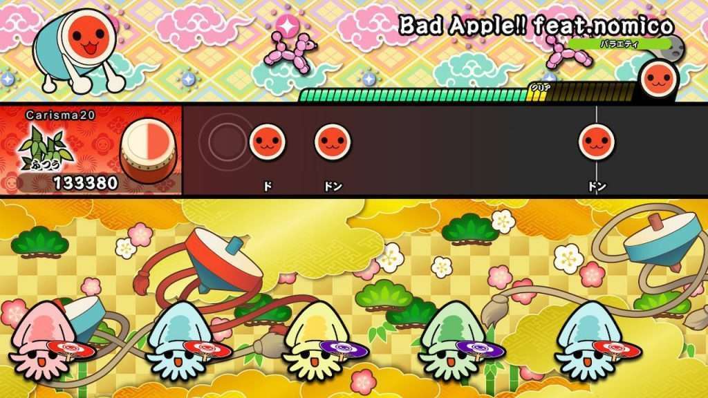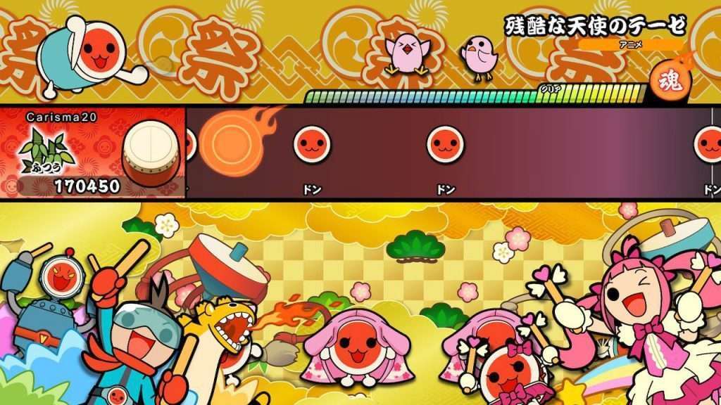 D’altronde tutto in questo gioco richiama fortemente il Giappone, a partire dai personaggi, le varie figure giapponesi, e ovviamente anche il controller. Con taiko, in giapponese, si tende a identificare le percussioni in generale, e il tamburo è sempre stato uno strumento popolare per loro, tanto che veniva usato anche nelle cerimonie religiose, fino a diventare uno degli elementi imprescindibili di una sala giochi: se sei in terra nipponica e entri in una di queste, sta pur certo che troverai almeno un cabinato arcade del taiko.