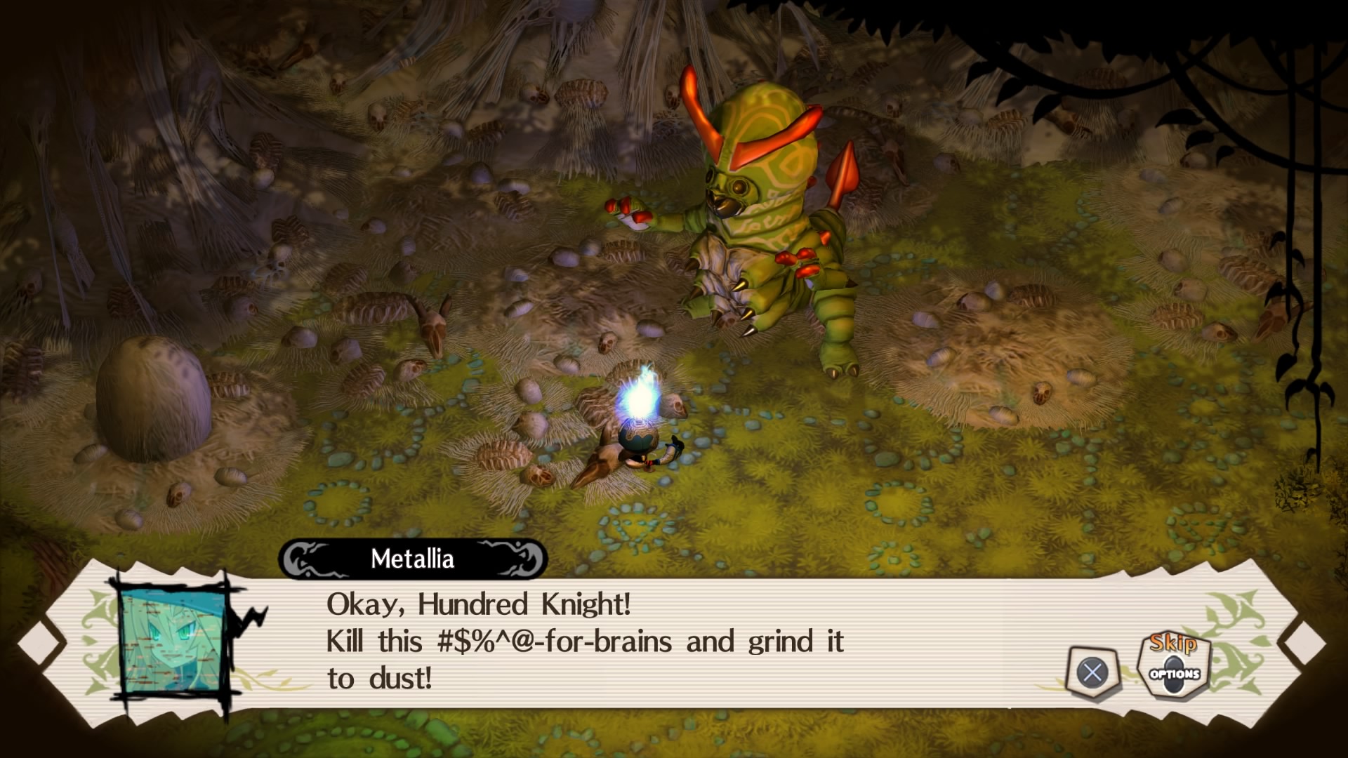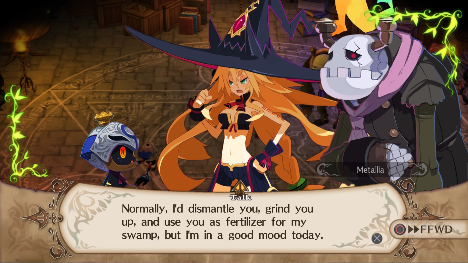 Così, dopo un lungo rituale di evocazione avente funzione di tutorial, il giocatore si trova al cospetto di quella che sarà la sua padrona per tutto il resto del gioco, col compito di aiutarla a conquistare il mondo di Medea attraverso l’espansione della palude in cui è obbligata a vivere a causa di un sortilegio. Una premessa narrativa che, mista all’inconfondibile profilo psicologico e caratteriale di Metallia, fa immediatamente intendere il nostro ruolo di anti-eroi della situazione. Ma occhio, sebbene inizialmente i toni sembrino i soliti scanzonati tipici di altre produzioni NIS come Disgaea, il tutto si fa man mano più cupo col procedere dell’avventura, al punto che alcune delle tematiche trattate potrebbero addirittura infastidire i più sensibili.
