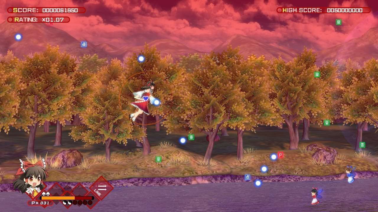 Il tutorial ci permette di apprendere le basi del gioco e all’inizio sarà possibile giocare la storia solo con Reimu, ma completando le run sarà possibile sbloccare anche Marisa e Cirno. Oltre alla normale modalità di fuoco (da scegliere tra tre distinte durante la fase di scelta del personaggio) sono presenti le classiche Spell Card, assimilabili alle bombe degli altri giochi appartenenti al genere, le quali tendono a fare pulizia dei proiettili su schermo; un pulsante adibito a rallentare il movimento in modo da avere più controllo, uno scudo che cancella i proiettili nelle vicinanze e infine una barriera (chiamata Danmaku Rush) che assorbe i proiettili e ci permette di dashare attraverso i nemici, nonché essere l’unico modo per terminare i boss e i nemici più grandi.